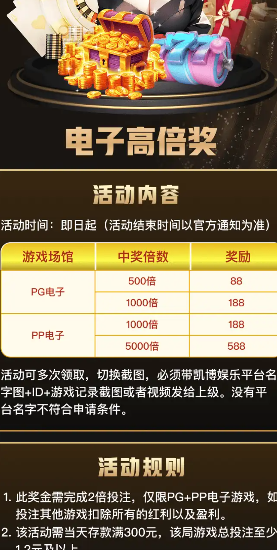 限制:本+彩的 10倍流水,最高出款 无上限,可免费。仅限电子系列
