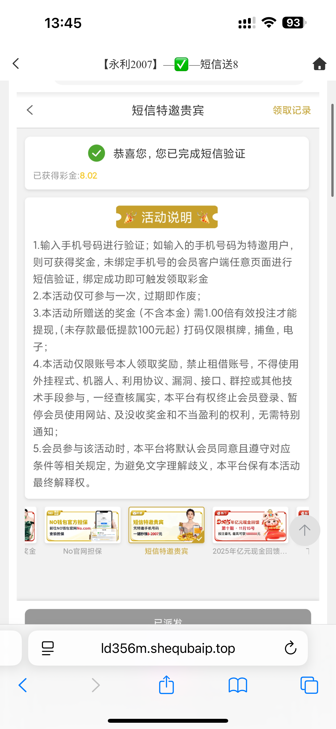 碰瓷短信特邀彩金