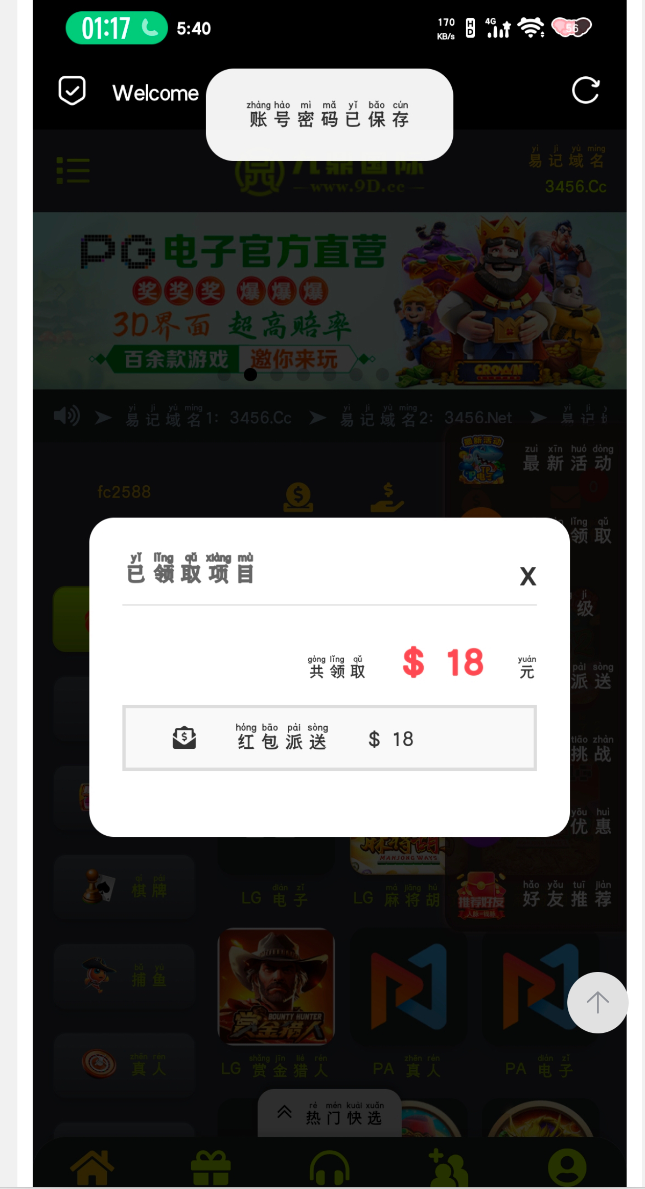 电话回访,登录弹出来直接领18